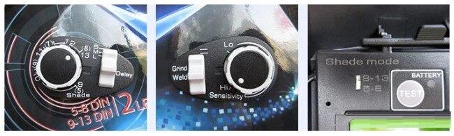 - Диапазон затемнения светофильтра: 5 — 13 DIN (DIN5-DIN8 для сварки на малых токах, DIN9 - DIN13 для стандартных сварочных задач)